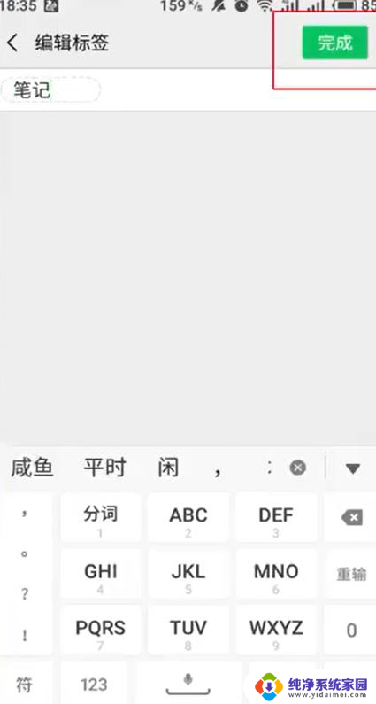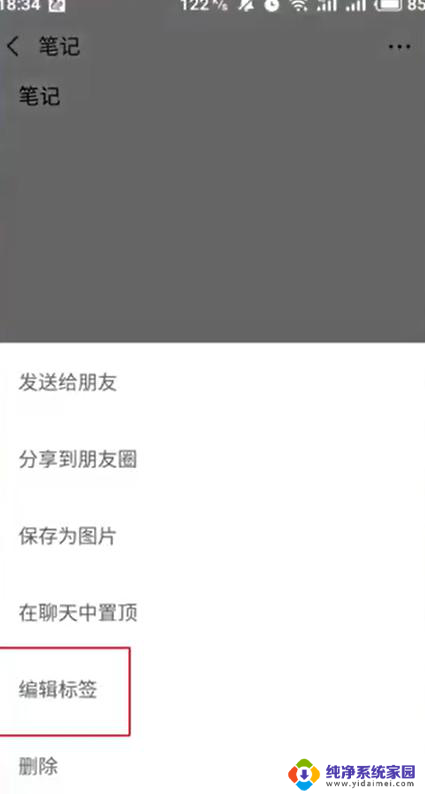 4输入“笔记",点击上方“三个点”。点击“编辑标签”。